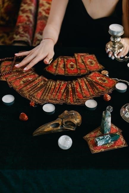 Getting started with tarot PDFs is simple and accessible. These resources offer a variety of tools, from printable decks to interpretation guides, making it easy to begin your tarot journey. They are ideal for documenting readings, learning card meanings, and exploring spreads in a convenient digital format.